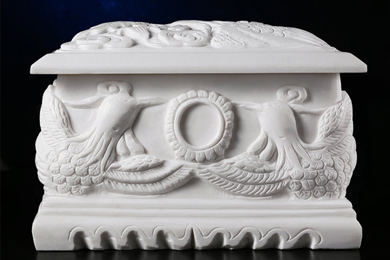 北京这边的汉白玉骨灰盒,原来料来自房山大石窝镇,这里的汉白玉石材是制作汉白玉骨灰盒的上等材料。汉白玉骨灰盒制作前,先由设计师根据纹样、图案进行设计,然后由雕刻师傅根据设计图取整块汉白玉进行雕刻。